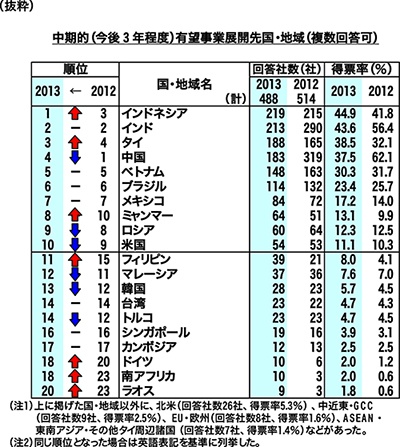 13.12.06インドネシアが有望国1位:国際協力銀行の海外展開調査
