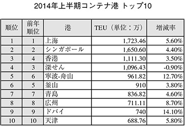 14.08.01上期の世界のコンテナ港トップ10はすべてアジア