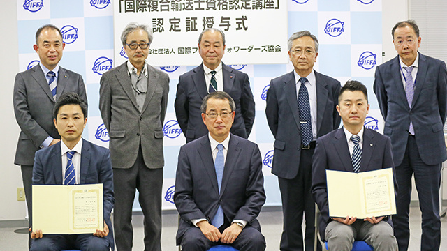 国際フレイトフォワーダーズ協会(JIFFA)の教育委員会は24日、2020年度の事業として東京と大阪で実施した国際複合輸送士資格認定講座の認定試験合格者のうち成績優秀者を事務局に招き、認定証授与式を開催、渡邊淳一郎会長(日新取締役専務執行役員)が認定証と副賞を手渡し、表彰した。